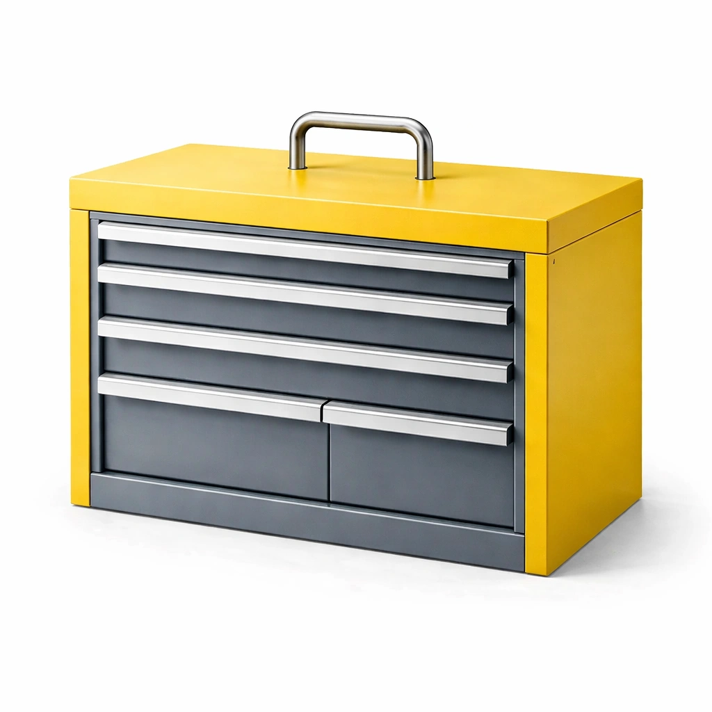 Cassetta degli attrezzi in metallo giallo grigio con maniglia