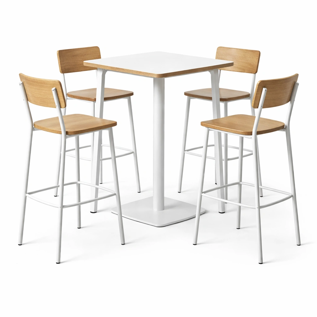 Set da bar in metallo e mdf con sedie in metallo e compensato