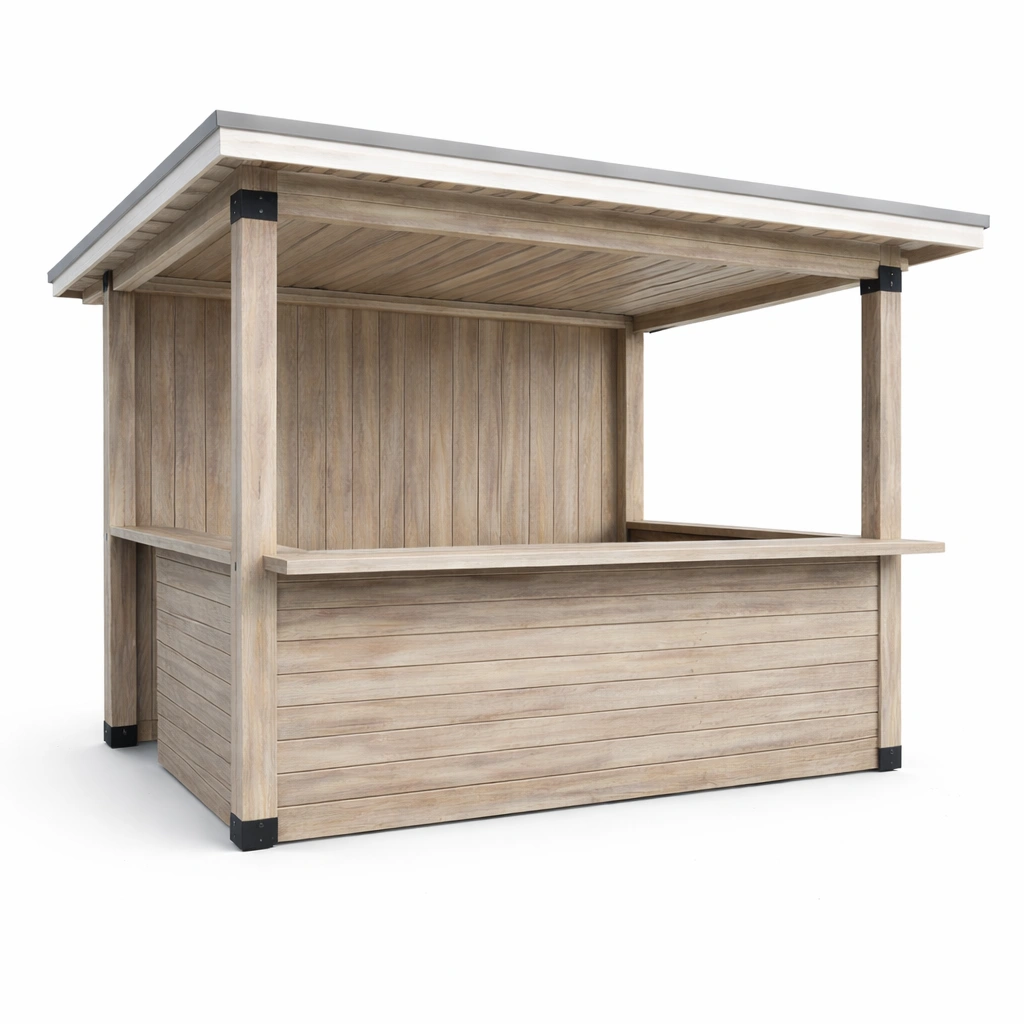 Questo chiosco è realizzato in legno massello, progettato per un uso esterno resistente. Le sue dimensioni sono 200 cm di lunghezza, 120 cm di larghezza e 240 cm di altezza. La struttura è dotata di una tettoia integrata e richiede assemblaggio. Include viti e staffe per il montaggio. Il prodotto è stabile e resiste all'acqua grazie a un apposito rivestimento.